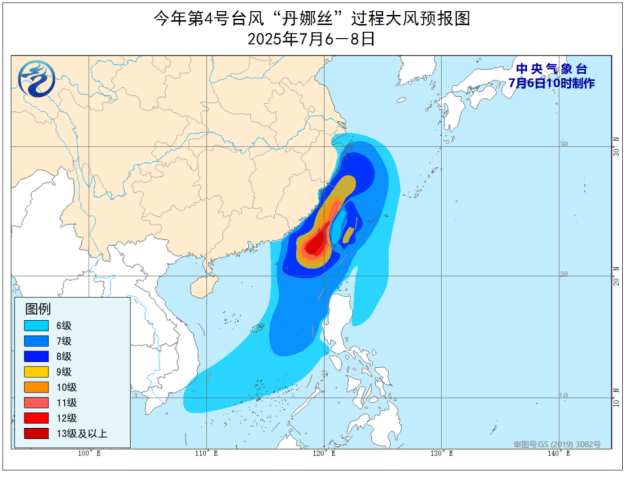 气象专家提醒:台风“丹娜丝”将给东南沿海部分地区带来强风雨天气,尤其是6日至8日浙江、福建等地部分地区山洪、地质灾害和城市暴雨积涝的气象风险较高,局地中小河流有发生超警戒洪水的气象风险;东海南部和西部、台湾海峡、南海东部和南部、巴士海峡、台湾以东洋面及浙闽沿海有大风灾害风险。请相关区域游客和当地居民提高警惕,密切关注气象台最新预报预警信息!