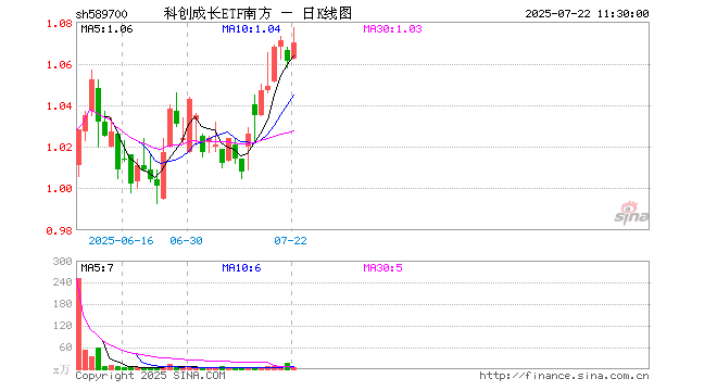 科创成长ETF南方(589700)业绩比较基准为上证科创板成长指数收益率,管理人为南方基金管理股份有限公司,基金经理为杨恺宁,成立(2025-05-21)以来回报为6.42%,近一个月回报为5.75%。