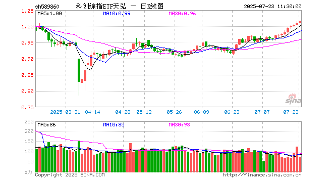 科创综指ETF天弘(589860)业绩比较基准为上证科创板综合指数收益率,管理人为天弘基金管理有限公司,基金经理为张戈,成立(2025-02-26)以来回报为1.02%,近一个月回报为10.35%。
