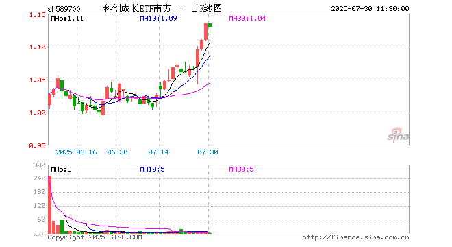科创成长ETF南方(589700)业绩比较基准为上证科创板成长指数收益率,管理人为南方基金管理股份有限公司,基金经理为杨恺宁,成立(2025-05-21)以来回报为13.65%,近一个月回报为11.12%。