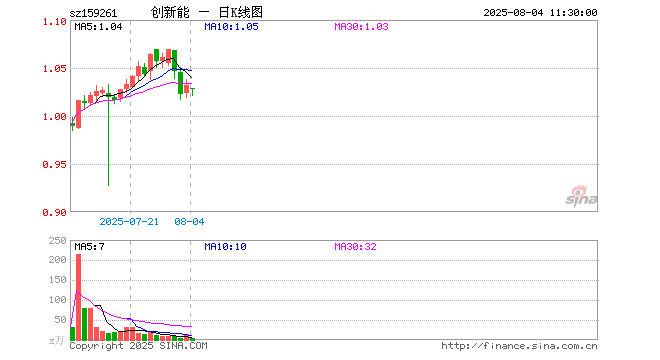 8月4日,截止午间收盘,创业板新能源ETF鹏华(159261)跌0.29%,报1.029元,成交额374.08万元。创业板新能源ETF鹏华(159261)重仓股方面,宁德时代截止午盘涨0.93%,汇川技术涨1.32%,阳光电源跌3.35%,亿纬锂能跌0.39%,欣旺达跌0.19%,先导智能跌0.23%,当升科技跌0.36%,特锐德涨0.18%,新宙邦跌0.30%,晶盛机电跌2.21%。