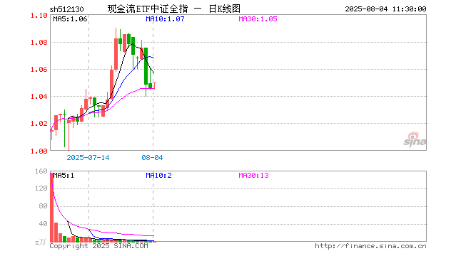 现金流ETF中证全指(512130)业绩比较基准为中证全指自由现金流指数收益率,管理人为鹏华基金管理有限公司,基金经理为寇斌权,成立(2025-06-05)以来回报为4.97%,近一个月回报为3.17%。